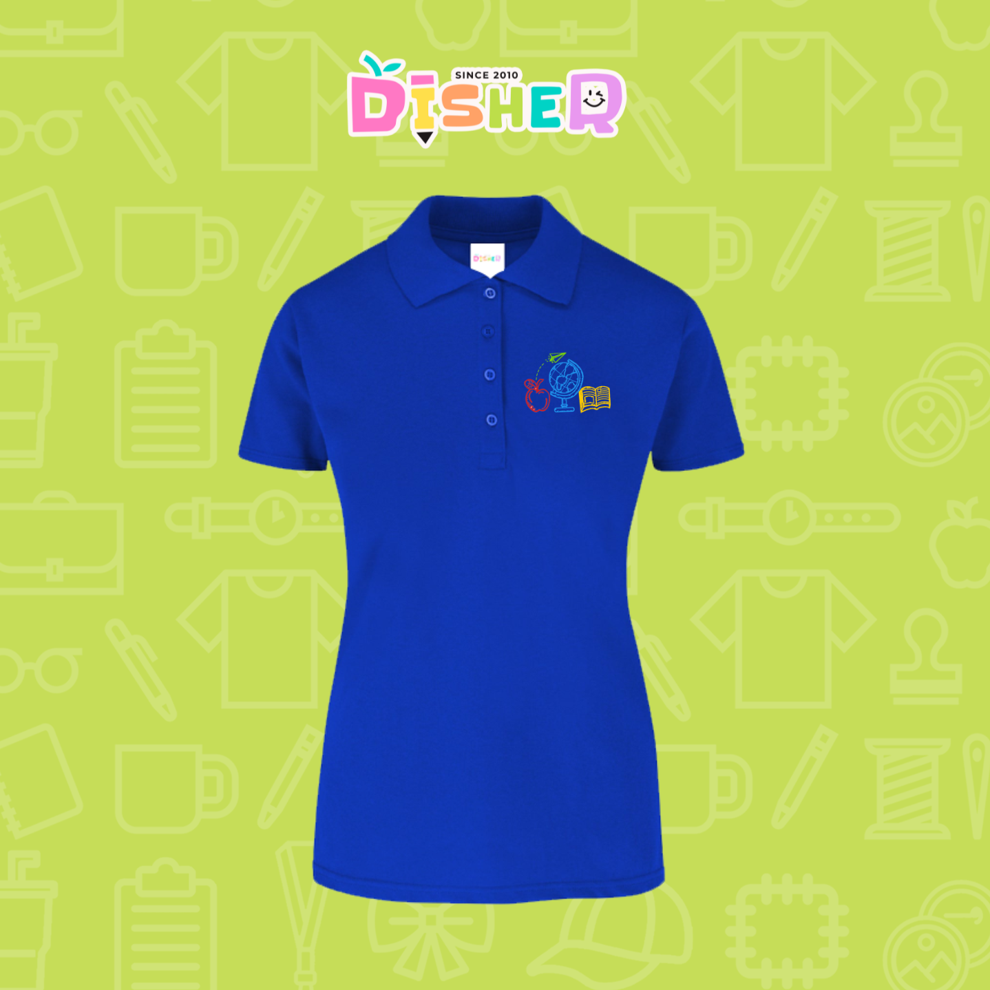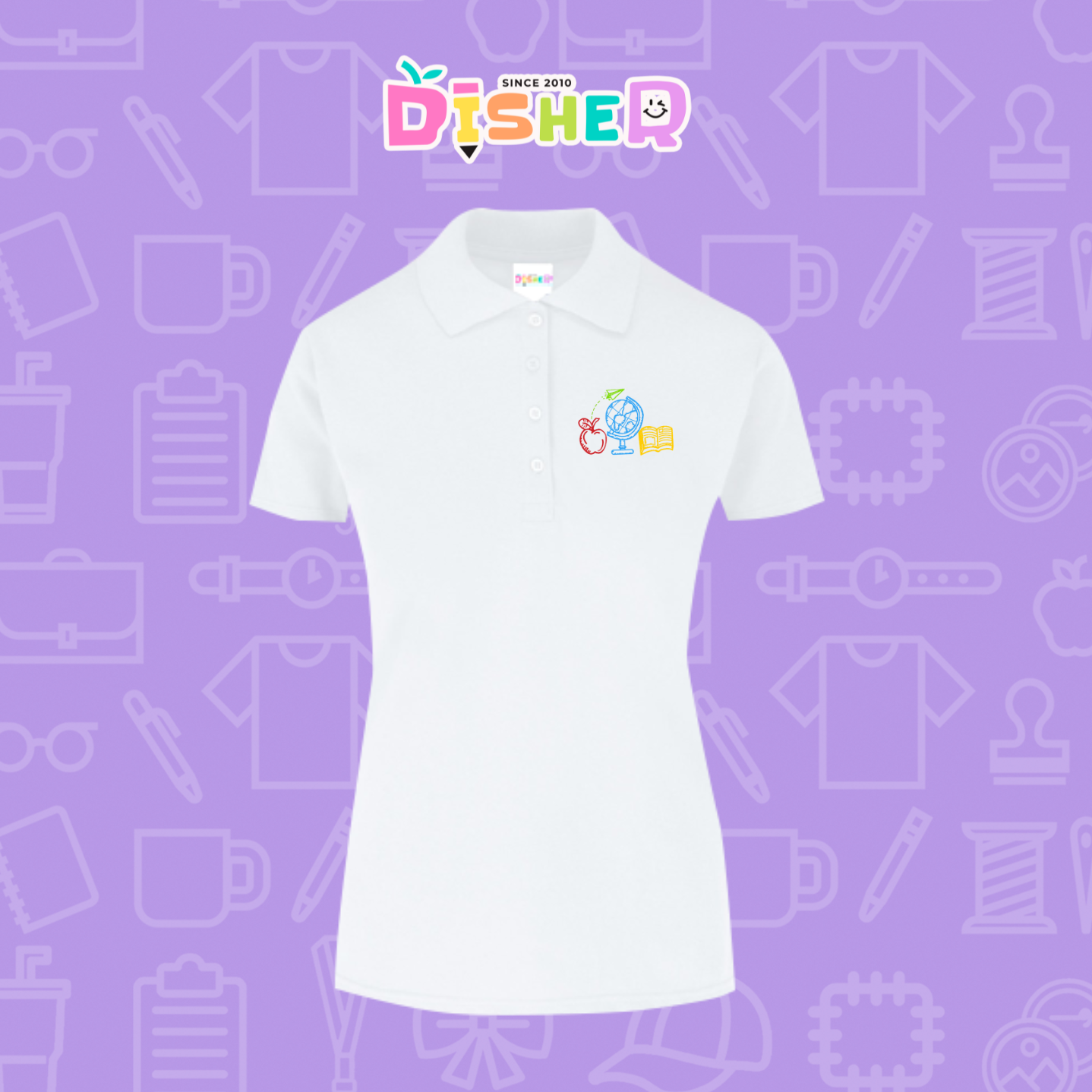 PBY-D-0071: Polo Bordada 50/50 Dama I Globo terráqueo trazos